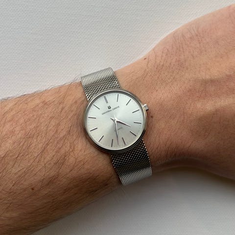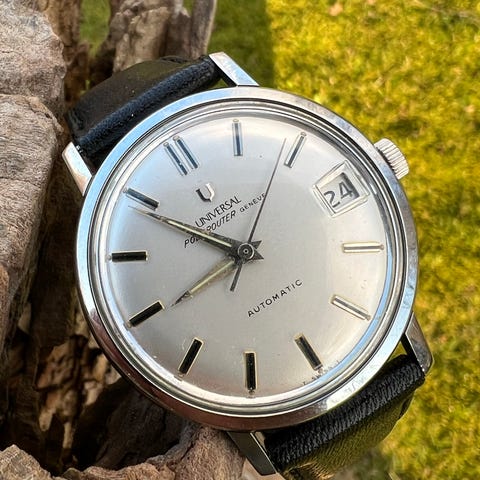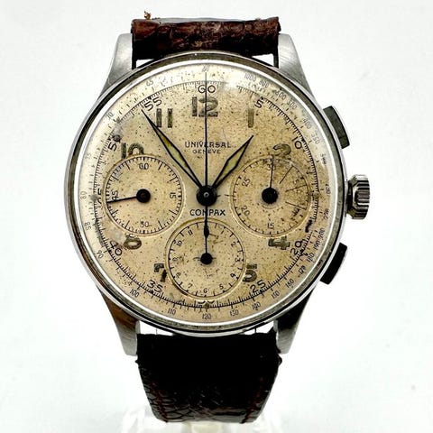 Den eftertragtede jumbo (38-39mm) stål version af universal Genève uni-compax med lækker hjemmelavet læder rem.