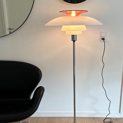 Gammel PH80 gulvlampe med træksnor og dæmperfunktion. Originalt og alt fungere. Ser man ikke så tit.