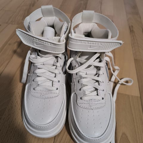 Nike Sneakers i størrelse 37,5 til damer. Skoene er fremstillet med en kombination af hvidt mesh og læder, hvilket giver åndbarhed og holdbarhed. Designet inkluderer en robust sål med god støtte og et klassisk snørebåndssystem.