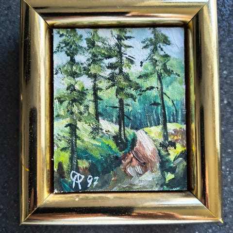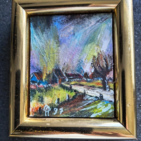Billedet er malet af Arne Petersen Seden i 2002 og måler 21x15 cm.