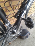 Lille taske med ekstra slanger og lappegrej, der kan monteres under sædet.