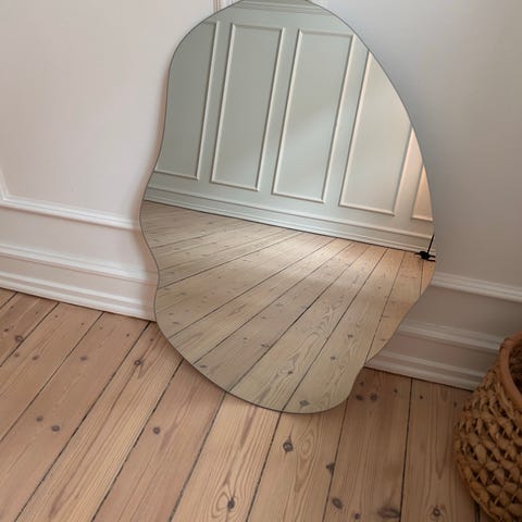 Total diameter 50 cm, selve spejlet er ca. 30 cm.