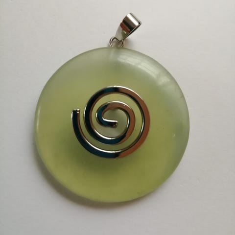 Pi Stone eller donut formet flot bjergkrystal på ca. 5cm diameter. Kan bruges som vedhæng til halskæde eller som kugleholder.