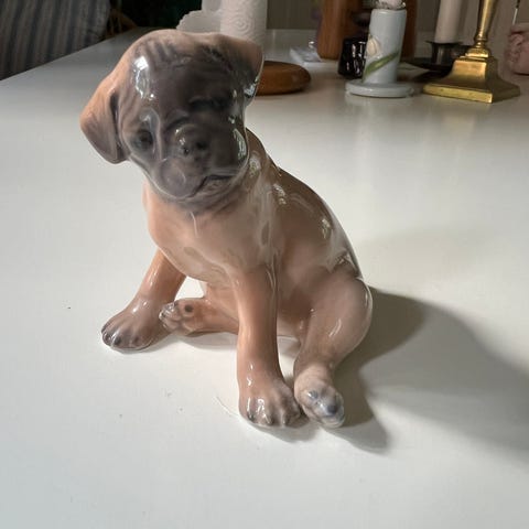 Bokser hund, Royal Copenhagen, RC figur nr. 3635.