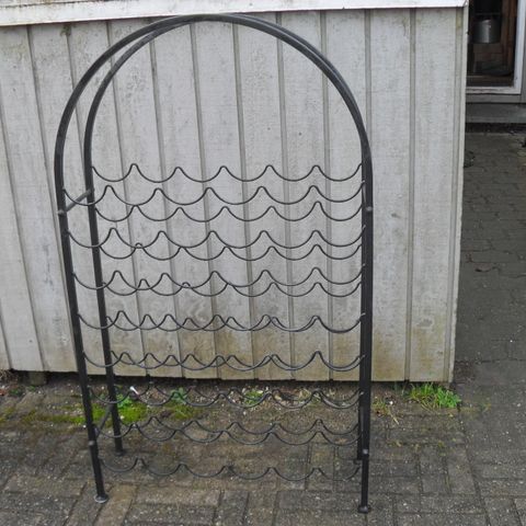 Pæn vinreol i lys grå metal, plads til 35 flasker. H: 95 cm, B:,70 cm. Kan evt. leveres.