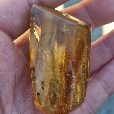Et stykke poleret rav der vejer 11 gr.