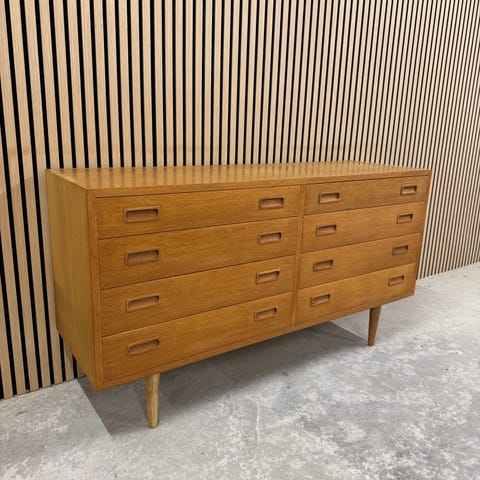 Poul Hundevad - kommode - egefiner - brugsspor - se billeder - på sokkel, men den er lige til at skrue af og der er huller med gevind som man kan skrue ben i hvis man ønsker.