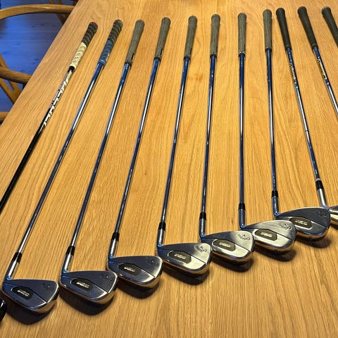 Callaway Apex Jernsæt PW-9-8-7-6-5-4-3 samt 2 stk Callaway Jaws wedges 50 og 56 gr. Ialt 10 jern. Alle med jumbo grips. Alle jern er med Recoil F3 grafit-skafter (Regular).