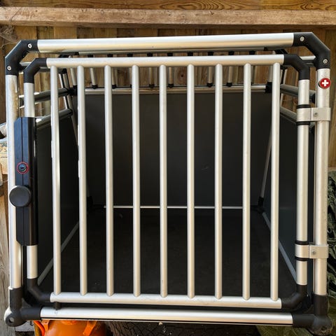 Solidt og sikkert hundebur i aluminium fra schweiziske 4Pets – TÜV-godkendt og testet efter ECE-R17 standard. Et af markedets sikreste bure til transport af hund i bil.
