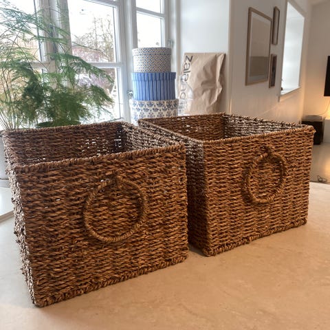 Wicker Basket Sæt Opbevaringskurve i Rattan