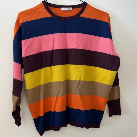Trøjen er i uld i størrelse 5. Modellen er lidt tætsiddende. Hvis varen skal sendes er det med DAO.