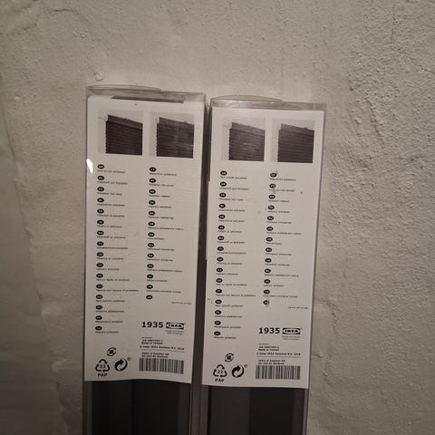 Du behøver ikke udskifte beslag eller bore nye huller, hvis du skifter rullegardinerne ud. De medfølgende væg-/loftbeslag passer til HOPPVALS og TRIPPEVALS plisségardiner og SKOGSKLÖVER rullegardin.