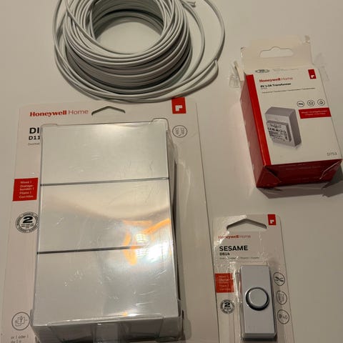 Honeywell Series 3 trådløs bærbar dørklokke med rekkevidde opptil 150 meter, flere melodier å velge mellom, og enkel installasjon. Leveres med dørklokkeenhet og mottaker. Krever 4 AA-batterier (ikke inkludert). Passer for hjemmebruk.