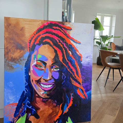 AZ Maleri Portræt af Mand med Blåt Hår og Tatovering