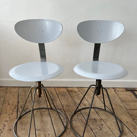 Værkstedsstol/Arbejdsstol/Kontorstol i patineret jern og træ.