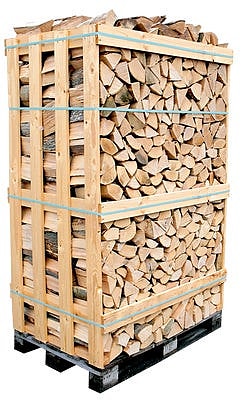Indeholder 1,8m³ tørt træ, der klar til brug.