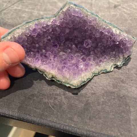 Magisk tårn i ametyst med et meget fint bånd af crazylace agat, samt bjergkrystal.