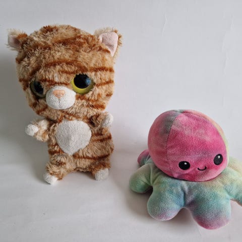 Næsten som ny. 70 kr. for hesten. 75 kr. for bamsen. Regnbue. Rainbow
