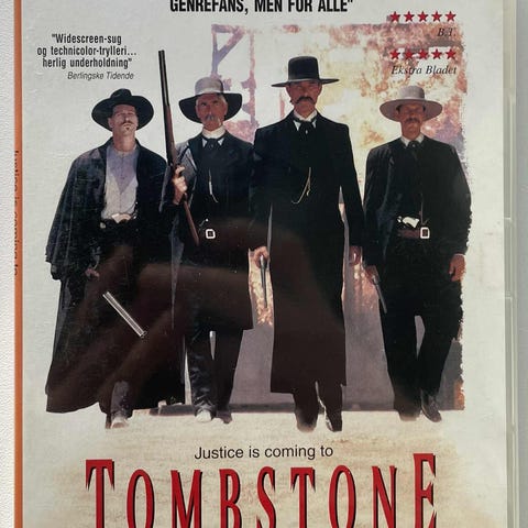TOMBSTONE, instruktør George P. Cosmatos og Kevin Jarre, DVD, western, /Biografi/Drama/Historisk/Helaftensfilm. Fra 1993. Spilletid: 2 timer og 3 minutter. Med ekstra materiale.