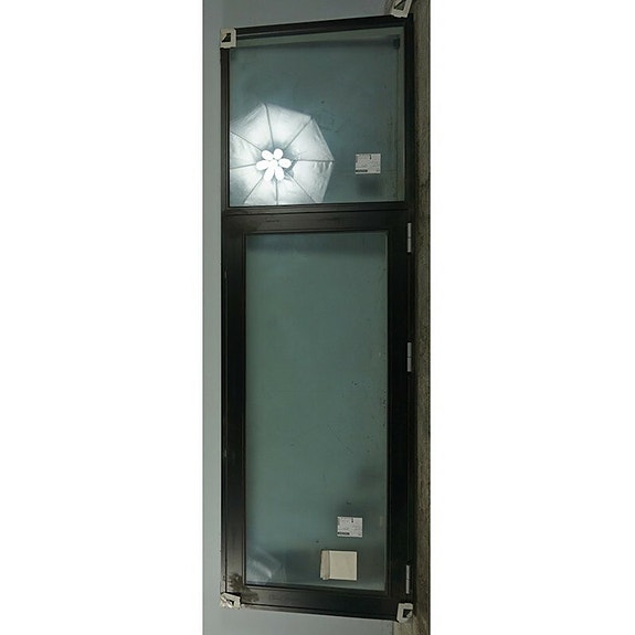 Vinduesparti i træ/alu med drejekip funktion i det store øverste felt, Åbner indad, mangler greb
