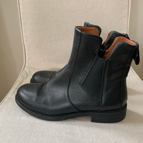 Brune støvler i kernelæder og wedged hæl fra Miz Mooz, New York. Gummisål og lynlås i siden. Aldrig taget i brug.