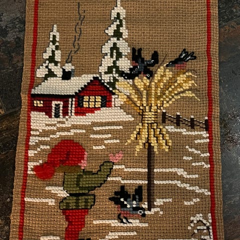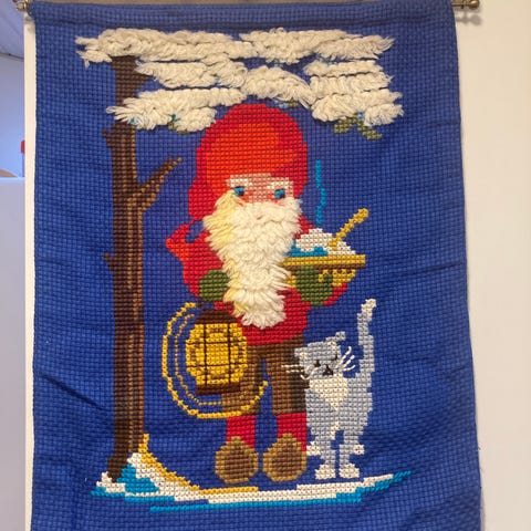 Broderet Ophæng til jul / korssting 🧵/ nisse på sækkelærred