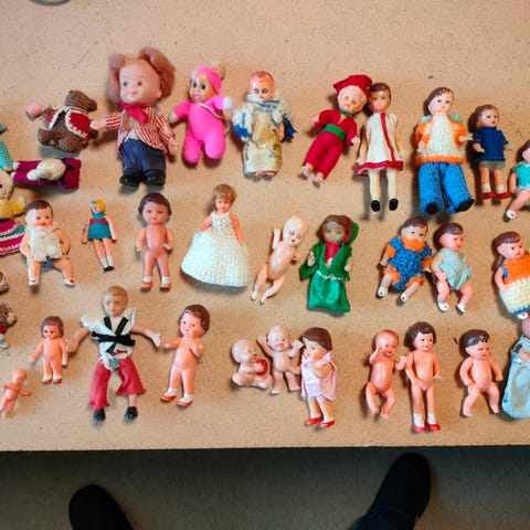 Den uden hår er lidt defekt på den ene hånd og den med håret kan lukke øjnene.