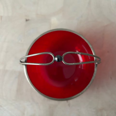 Holmegaard, kandisskål (sukkerskål) i blåt glas med Svend Toxværd ægte sølvkant og hank. Den er fra 1950'erne,