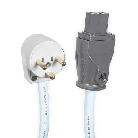 PRIS-MATCH! SUPRA LoRad strømkabel med DK jordstik (Type-K – C19, 16A) | Kvalitets strøm kabel fra Supra, særdeles velegnet til brug med MD08 eller MD10. Denne udgave har DK vinklet han stik, med jord og 16A apparat hun.