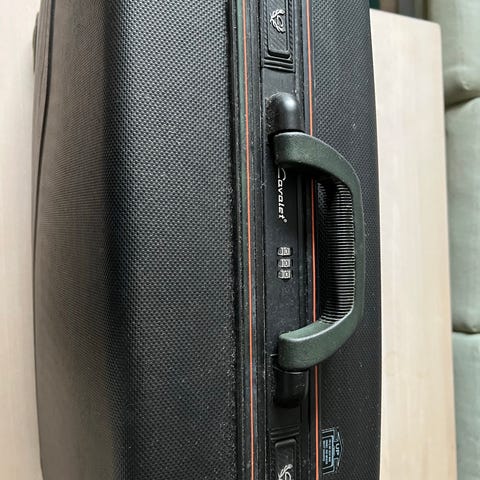 Samsonite Plast kufferter i gul og blågrøn. Kufferten har et hårdt ydre materiale i plast, hjul til nem transport, håndtag og en låsemekanisme. Indvendigt har kufferten en lomme af tekstil og har stropper til fastgørelse af indholdet.