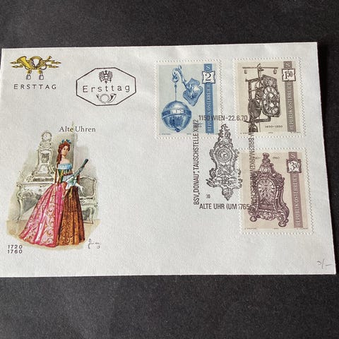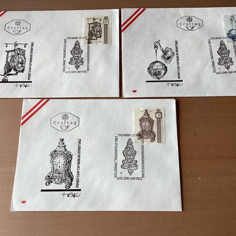 Østrig komplet sæt førstedagskuvert ure
