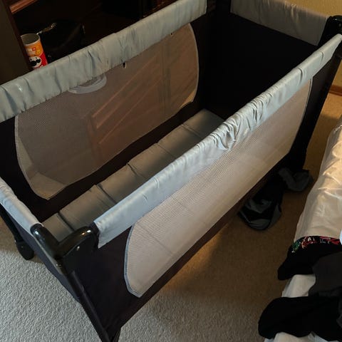 God ældre rejseseng med madras, alt fungere som det skal har ikke været brugt meget.