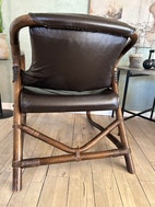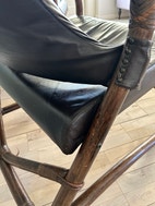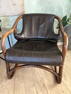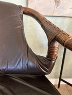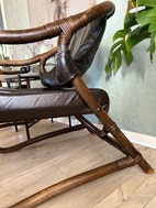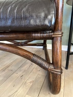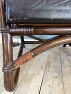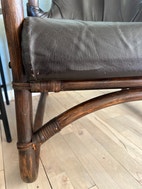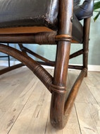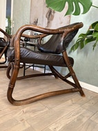 Sæt med 2 loungestole i bambus og naturligt læder fra 60’erne