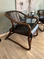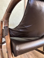 Sæde og ryg er posterede og beklædt med brunt naturlig læder.