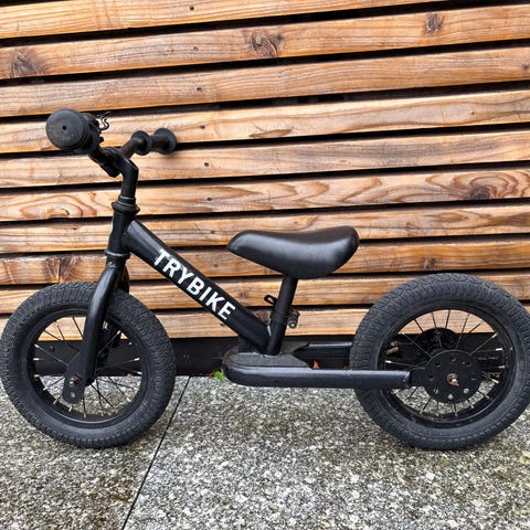 Wooden Balance Bike with Black Wheels and Adjustable Seat