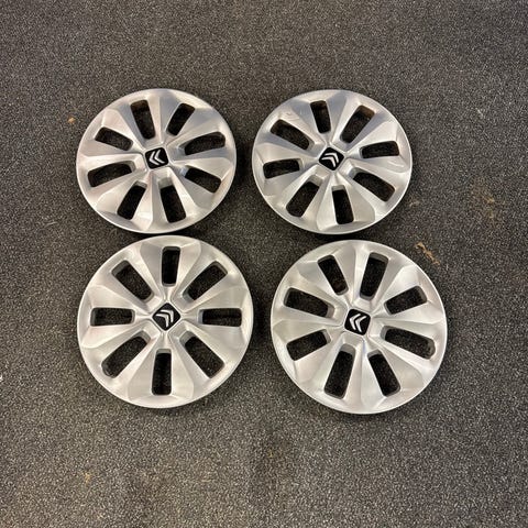 15", tilbehør, 2 stk Citroen 15" fabriksnye hjulkapsler. Reservedelsnummer er 5416EO. Pris pr. stk Kr. 200 eller begge for Kr. 300.