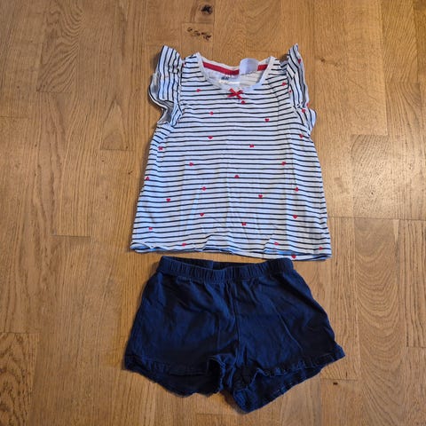 Todelt nattøj til de lune nætter. Sættet består af T-shirt og shorts