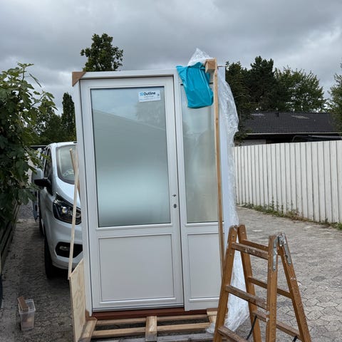 Helt ny dør. Åbner højre ud. Udvendig karm mål 77,8 cm x 208,5 cm