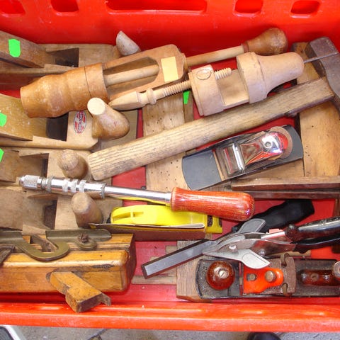 Gamle ubrugte træhåndtag til værktøj