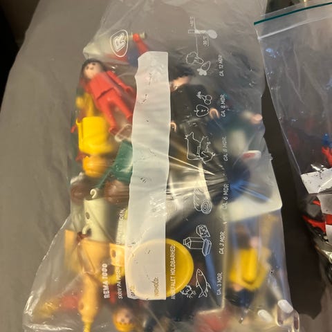 Diverse playmobilfigurer både piger i bikini, røvere, prinsesse, spøgelse, aber, små hunde osv