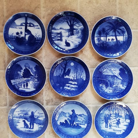 JULEPLATTER RC, Royal Copenhagen , 1970, 1970, 1971, 1972, 1973, 1975, 1976, 1977 og 1978. Alle i hel og fin stand