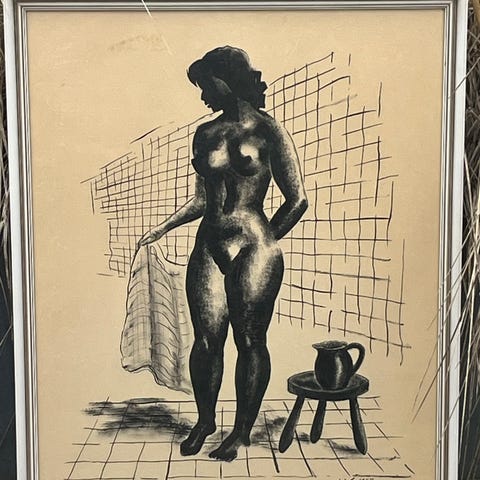 Titel: Oppe i Salling. Hos en fattig bødker på landet foretages en udpantningsforretning af sognefogden med hans tvende vurderingsmænd.