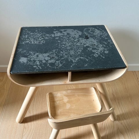 Bord/stolesæt, Plantoys, Velholdt bord med bordplade, som man kan tegne med kridt på.