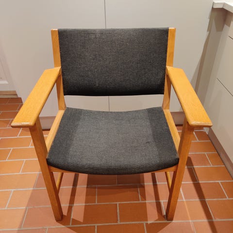 BM 73 - Armstol i patineret egetræ og nybetrukket. Designet af Børge Mogensen for Søborg Møbelfabrik. Istandsat.