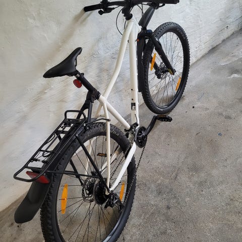 Cyklen er i flot stand, altid opbevaret i kælder, serviceret og vedligeholdt (og i øvrigt altså desværre brugt meget lidt pga. skulderskaden). Det er en Woman størrelse L19 med 29" dæk, indstigningen er lidt lavere end på en herremodel, men cyklen her kan uden tvivl lige så godt passe til en mand/dreng, hvis bare højden er ca. ml. 170-190 (er selv 170).