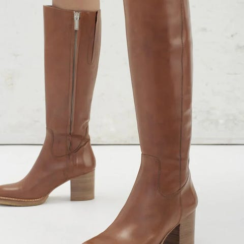 Chunky støvlet i skind med 8,5 cm blokhæl.
