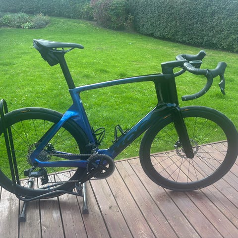 Der er sat Tour de france edition gp5000 dæk limited edition sat på 50 mm carbon hjul. Med tubeless installeret. Der sidder shimano ultegra pedaler på. Fizik styrbånd og hydraliske skivebremser. 2x drikkedunksholdere, cyklen er 12 speed. Medfølger også sadel taske.