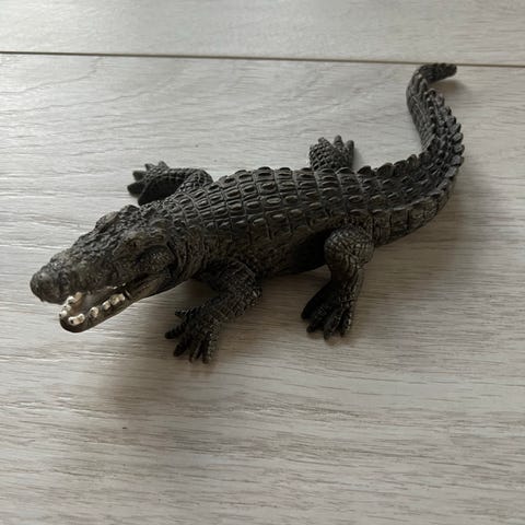 Schleich Krokodille Figur Legetøj i plast med detaljeret tekstur og realistisk udseende. Figuren forestiller en krokodille med åben mund og er designet til børn til leg og samling.