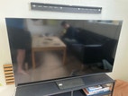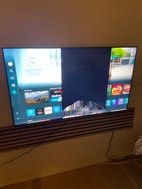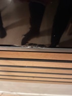 Under montering af TV’et blev den nederste del af skærmen/rammen trykket. Det gjorde, at der er en bred, sort stribe i midten af fjernsynet.
