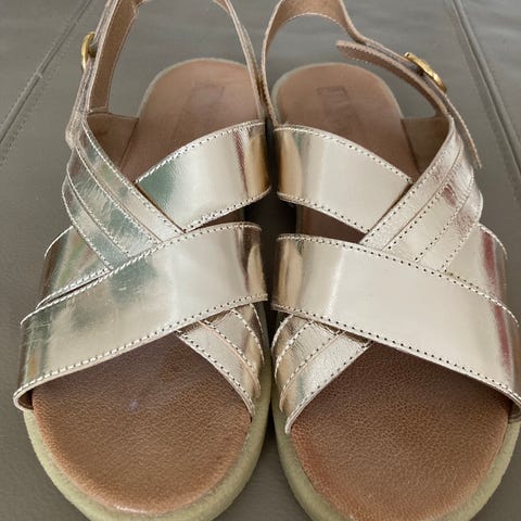 Virkelig sød høj plateau sandal med blomster i lys rosa. Brugt 1 gang til en barnedåb. Højde på hæl er 10cm og ned af mod front 6cm. Fra H&M str. 38